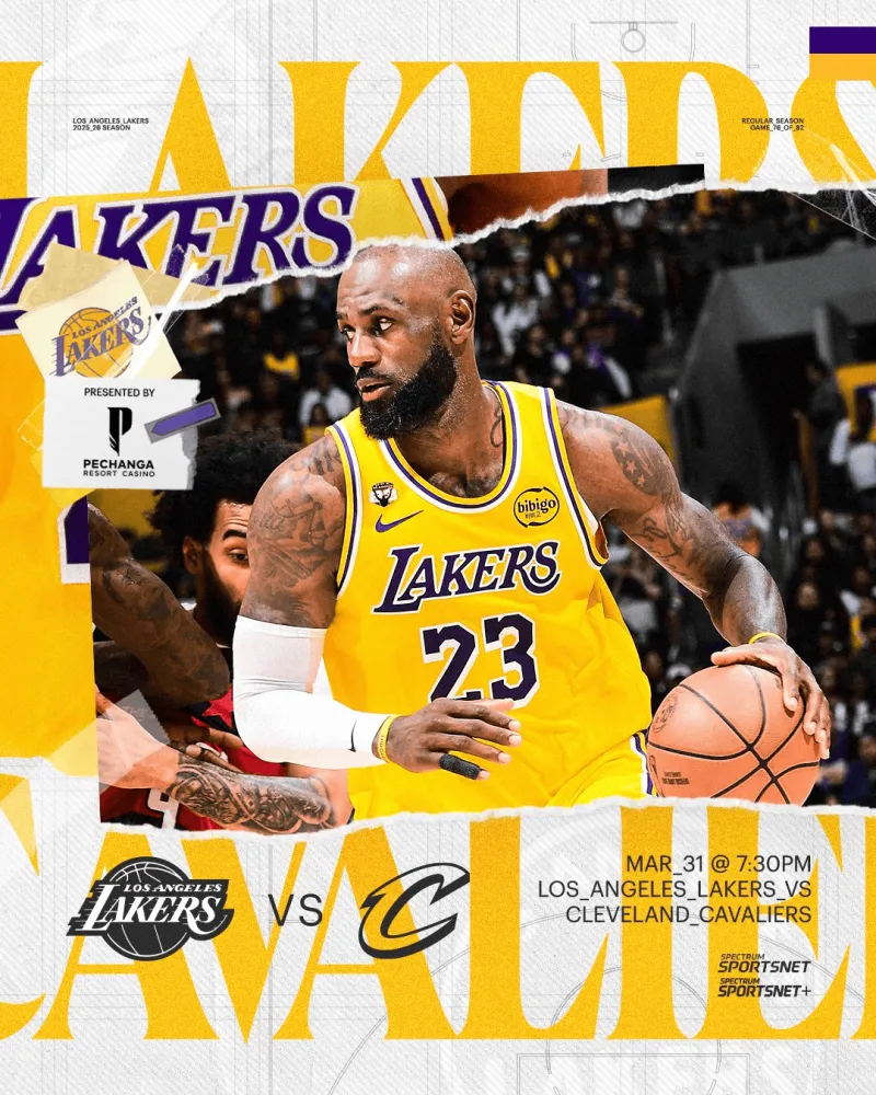 虎扑04月01日讯 今日NBA常规赛,湖人将对阵骑士。